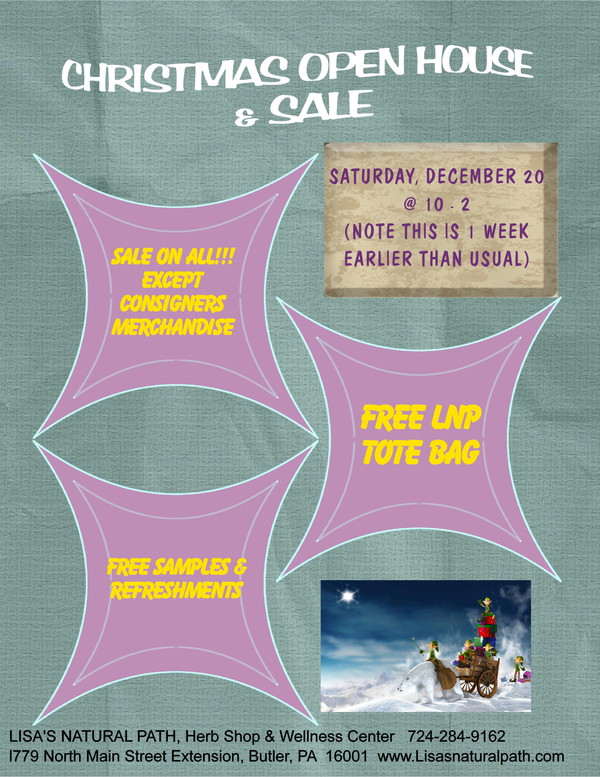 FRIDAY, DECEMBER 5 @ 11:00 AM Dr. Lisa will be speaking on Natural Solutions to Sleep Issues at World of Wellness in Pittsburgh (previously Dr. James Winers Office) Come hear her, other wonderful speakers and enjoy their Open House!!!
